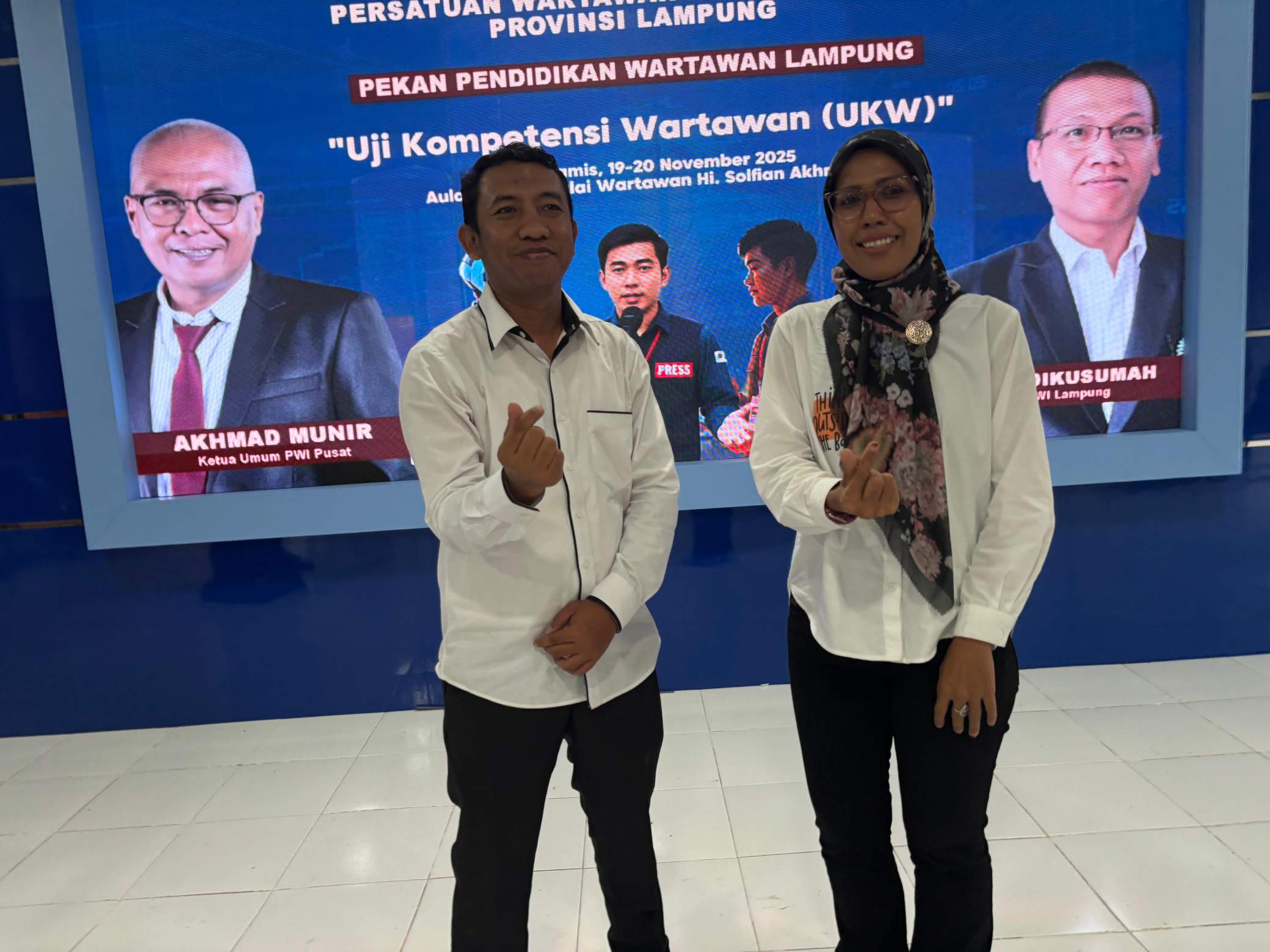 Pempred Lampung Newspaper Rio Aldipo dan Wakil Pempred Lampung Newspaper Deka Agustina Ramlan Dinyatakan Kompeten dalam Uji Kompetensi Wartawan Angkatan 36 tahun 2025 yang digelar PWI Lampung. Foto Ist --