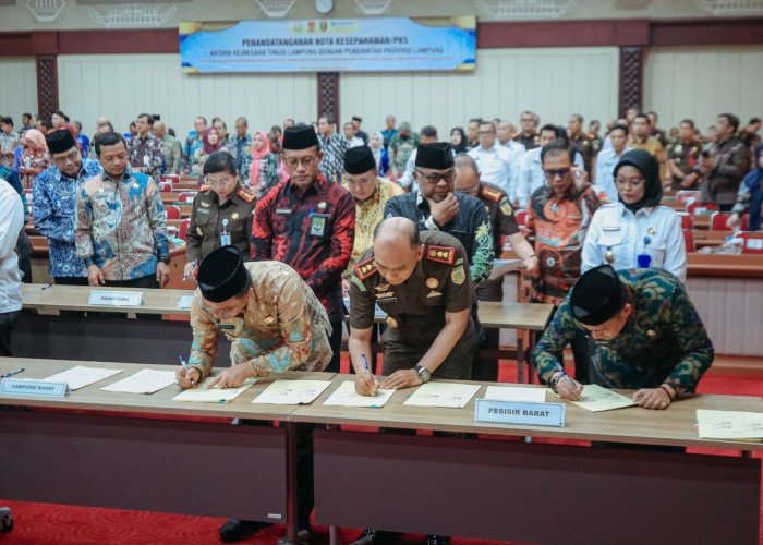 LAMPUNGBARAT,LAMPUNGNEWSPAPER.COM--Upaya memperkuat penerapan restorative justice di Provinsi Lampung semakin dimatangkan melalui penandatanganan Nota Kesepahaman (MoU) antara Pemerintah Provinsi Lampung, Kejaksaan Tinggi (Kejati) Lampung, Badan Narkotika Nasional (BNN) Provinsi Lampung, Kementerian Agama RI Provinsi Lampung, para bupati/wali kota, serta kepala kejaksaan negeri se Lampung.