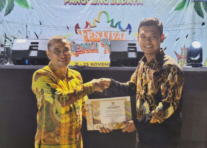 Penghargaan diserahkan oleh Kepala Dinas Pariwisata dan Ekonomi Kreatif Provinsi Lampung, Bobby Irawan, S.E., M.Si., kepada Ketua Tim Humas dan Kerja Sama UIN RIL, Novrizal Fahmi, S.Si., M.I.Kom., pada acara penutupan Lampung Fest, Selasa malam (25/11/2025).